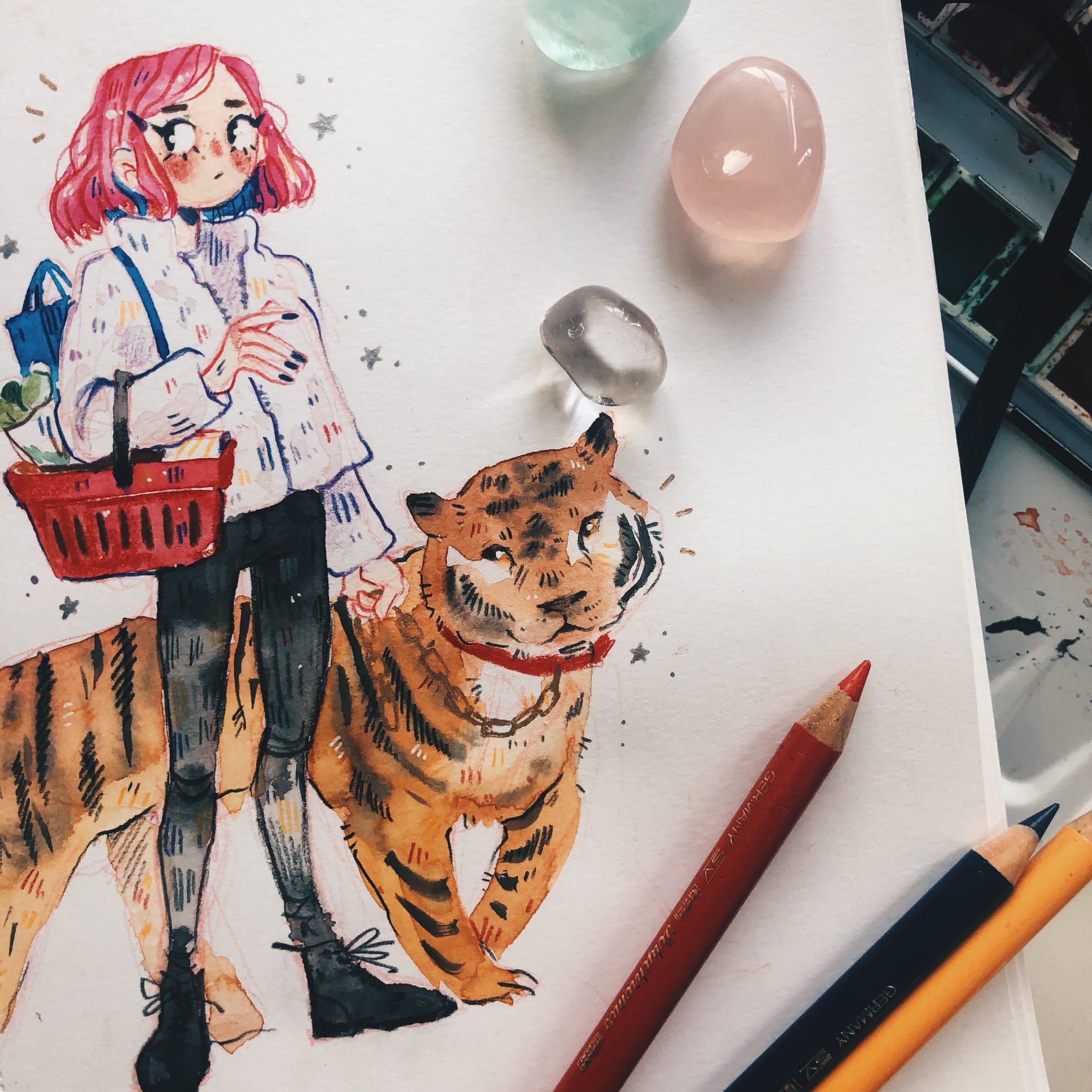 Analogue art is often more messy and personal. I like to draw sketches about my daily life and things that simply come to mind without any pressure. My favorite mediums are pencils, markers, watercolor and fountain pens. I also love mixed media techniques: watercolor + colored pencils are my fave!