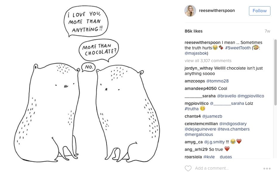 It was super cool when Reese Witherspoon reposted one of my drawings! But I am not sure if that makes her a "fan" though. :)