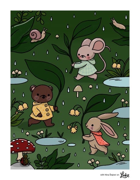 This is Nina's third book in Lake, and I have to say, it's currently my favorite of the three. The animals in Meadowland are always in the most wonderfully cozy situations, and I could spend hours just browsing the drawings before I even start coloring. My absolute favorites? The one where the characters are sleeping tucked into the flowers, and the one where they're using leaves as umbrellas instead of actual umbrellas. How cute is that?! Nina has such a gentle, whimsical style and this book is the coziest expression of it yet.